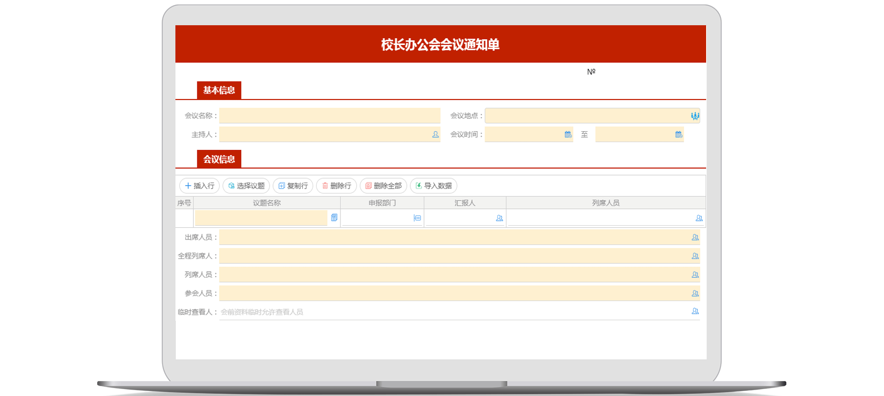 汇报人、党政办工作人员进行上报议题,填报议题申报流程,议题审批时只需要相关领导线上审批,省时省力,在议题审批的过程中,议题内容不能更改,提高工作效率。