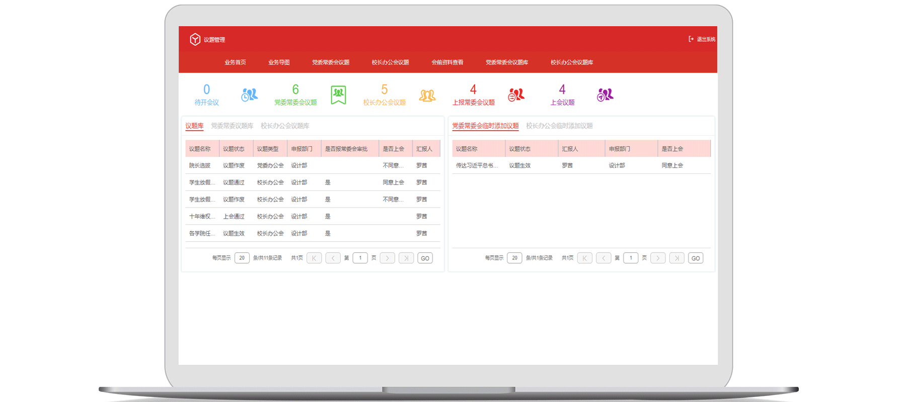 高校会议多,不同议题分类存档,议题库井然有序,寻找或者呈送议题时快捷迅速,或者重新申请议题,节约时间。