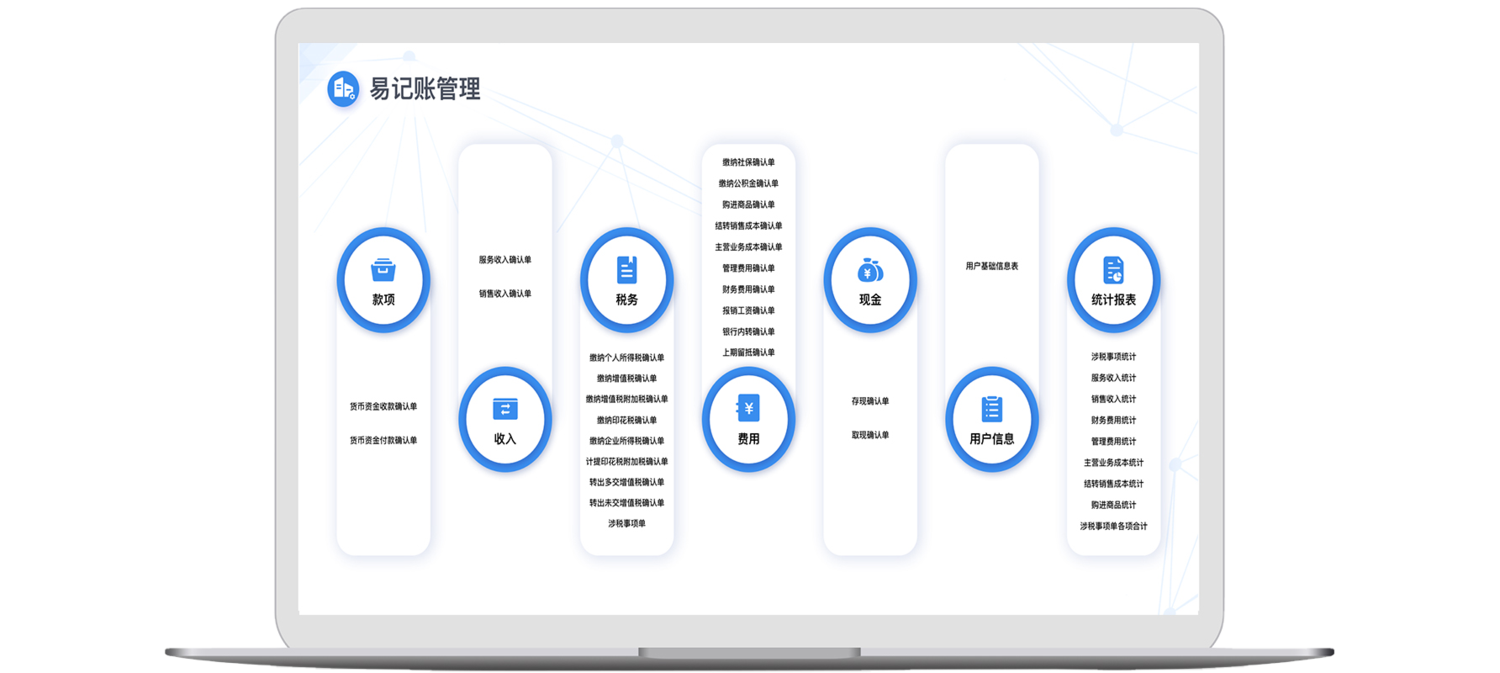 对客户日常记账信息可实时更新,减少了前期录入人员的整理分类过程,在经过系统的设置与流程配置后即可快速实现财务记账管理的信息化。