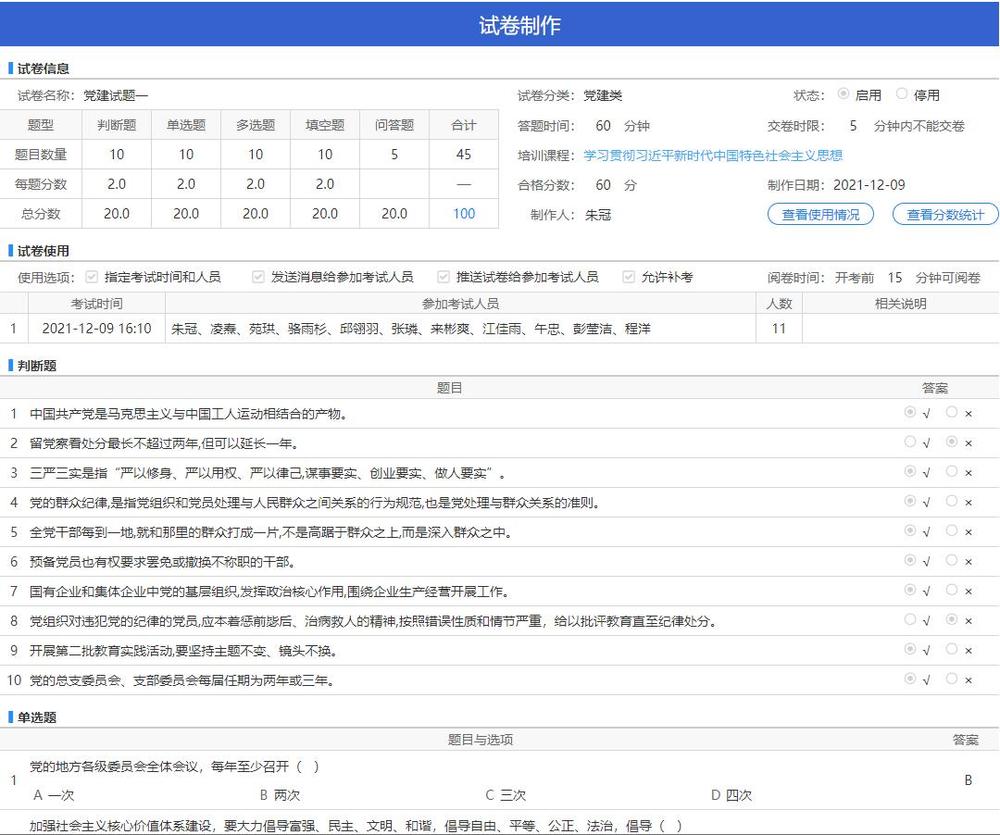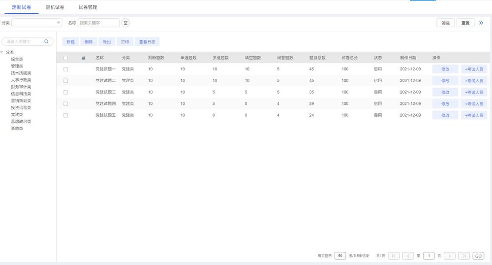 试卷分为定制试卷和随机试卷,设置了多重限制保证同时开考,同时结束,同时阅卷,同时批卷。
