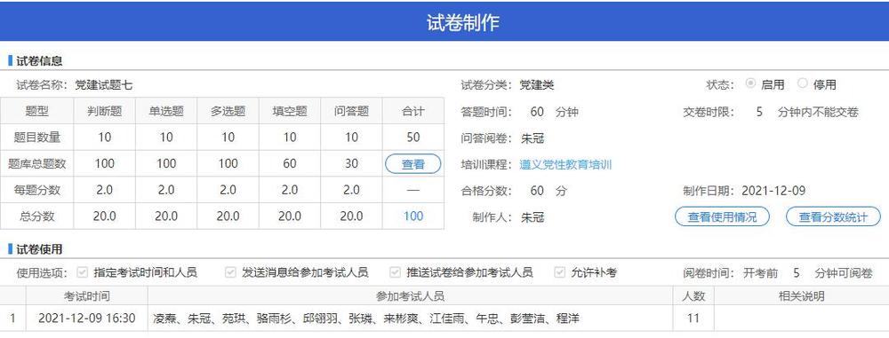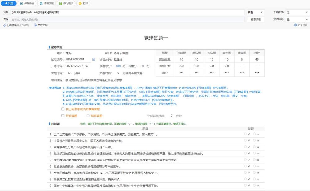 试卷无需印刷即可提醒相关人员参加考试,可推送电子试卷给相关人员;通过设置考试开始时间、阅卷开始时间、考试时限等,可以精准地控制考试的开始与结束。