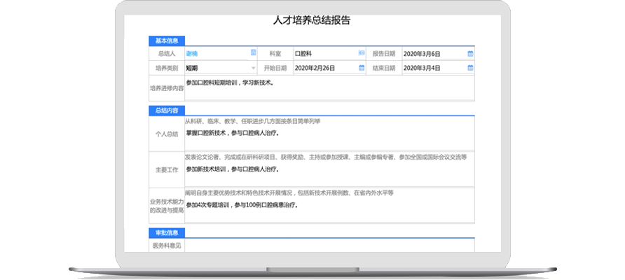 人才培养管理有助于提升您的医院医务人员技术水平。规范医务人员执行在职教育要求,按标准进行考试、培训、晋升,您的医院管理者还可随时关注人才培养情况,核实人才培养成果。